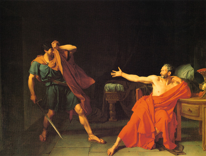 伦特党派遣的保皇分子谋害,被害时正在浴缸里边洗浴、边工作。这里,达维德满怀悲愤,