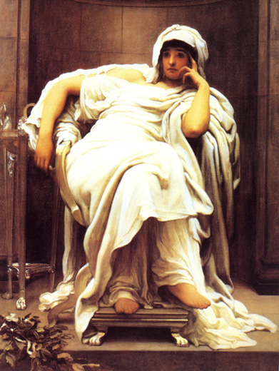 莱顿维护传统艺术原则,所以他的作品大多严谨有余,活泼不足。这件作品描绘的法蒂希达的全身像,便落入这样的套