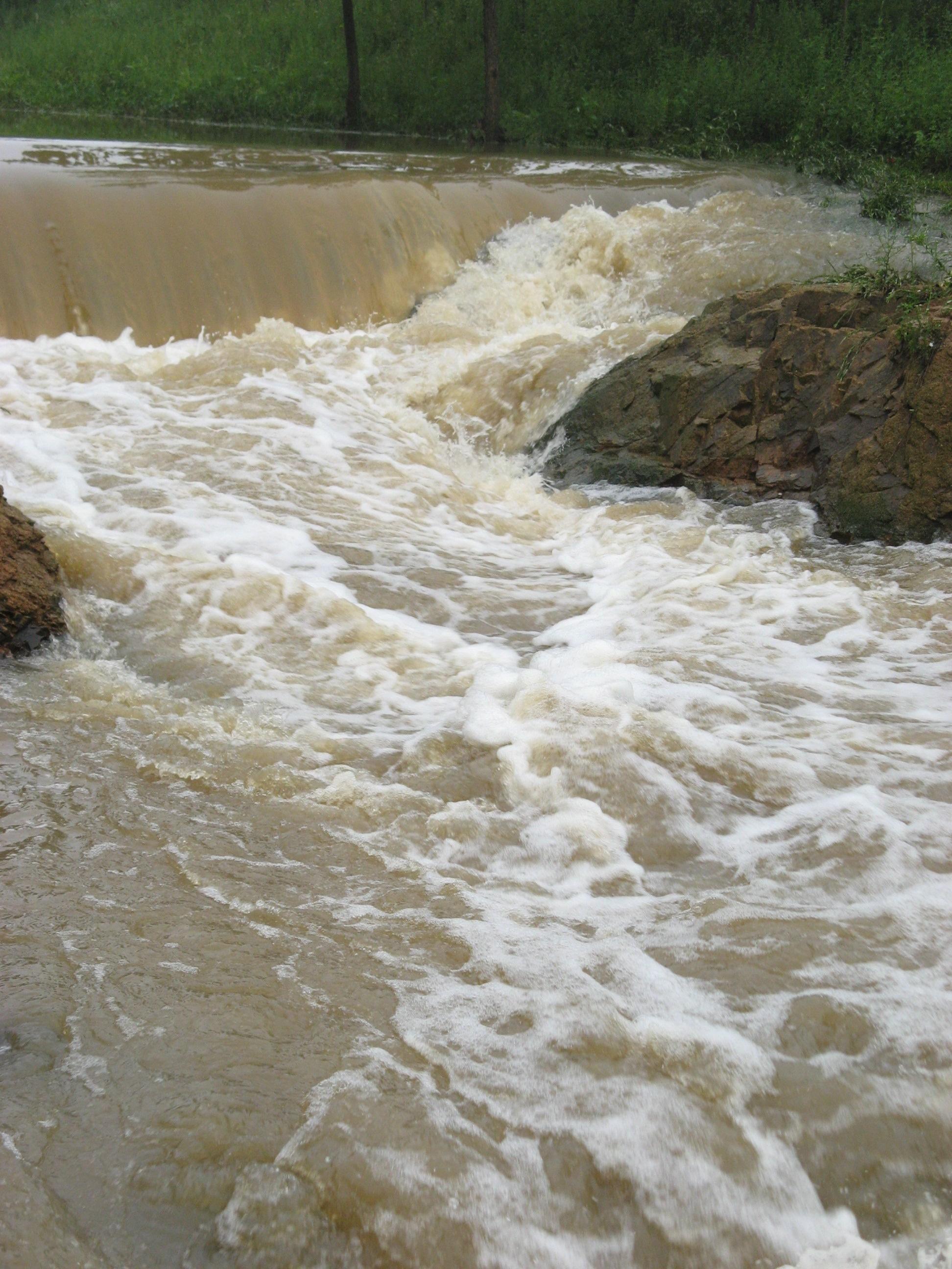 一夜暴雨过后,天还阴沉沉的。早晨起床推开客厅后窗,顿时,清新的空气伴随着隆隆的流水轰鸣声,一下子涌满了整个客厅!一时兴起,捻转至房后的河岸边,顺手拍下几张,与大家分享一下置身其境中的感受。