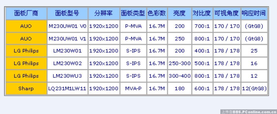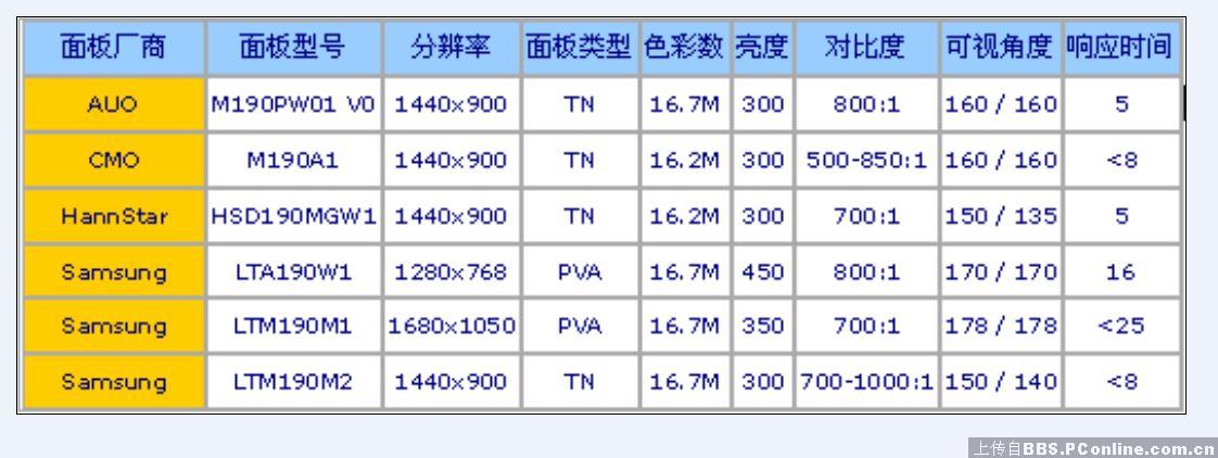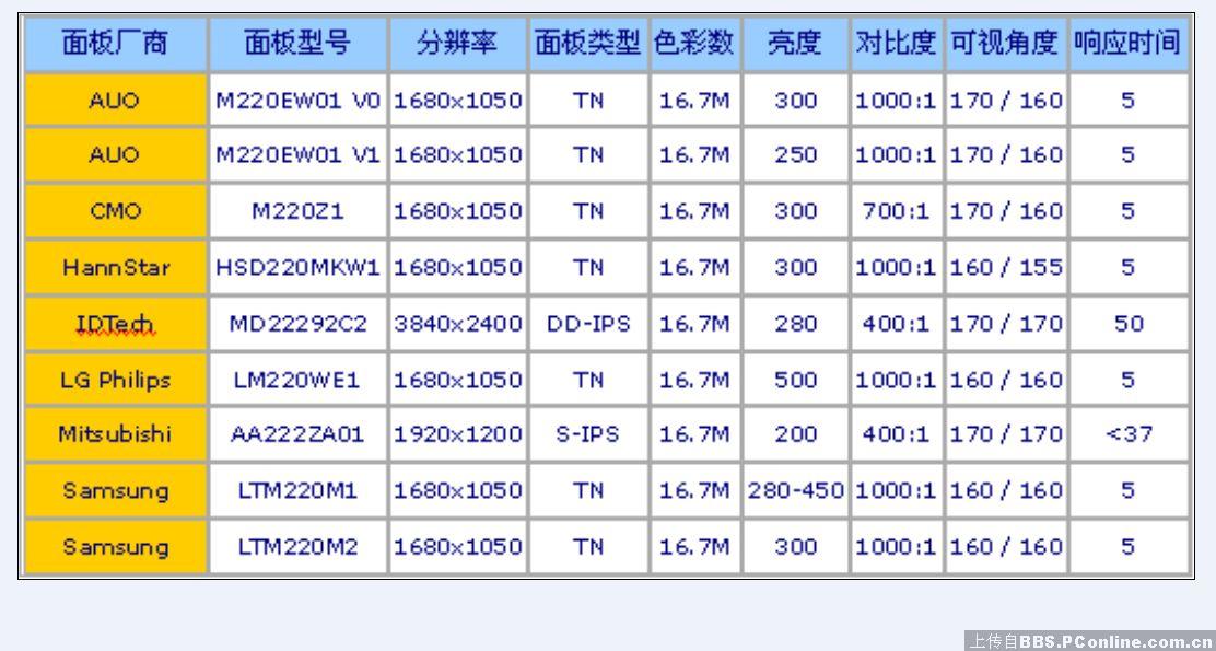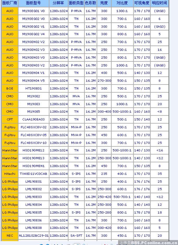 下面是各个屏产品常用的液晶面板,转给大家看看,参考一下