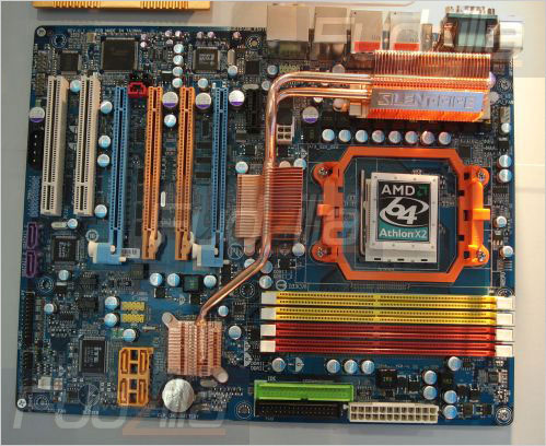 相比之下,技嘉“GA-5BXWV-RH”更加保守,只有一个PCI-E x16插槽、一个PCI-E x4插槽和四个PCI插槽,因此对高端用户来说就非常遗憾了。同时该主板也没有热管散热系统,只有北桥上有一个小小的散热片。