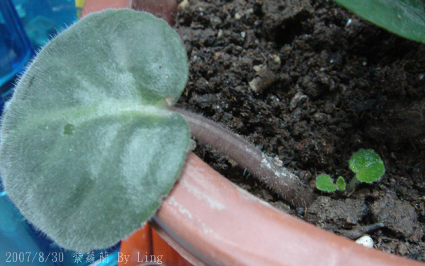 用紫蘿蘭葉子泡水發根,然後種入花盆兩個月,終於發芽了...