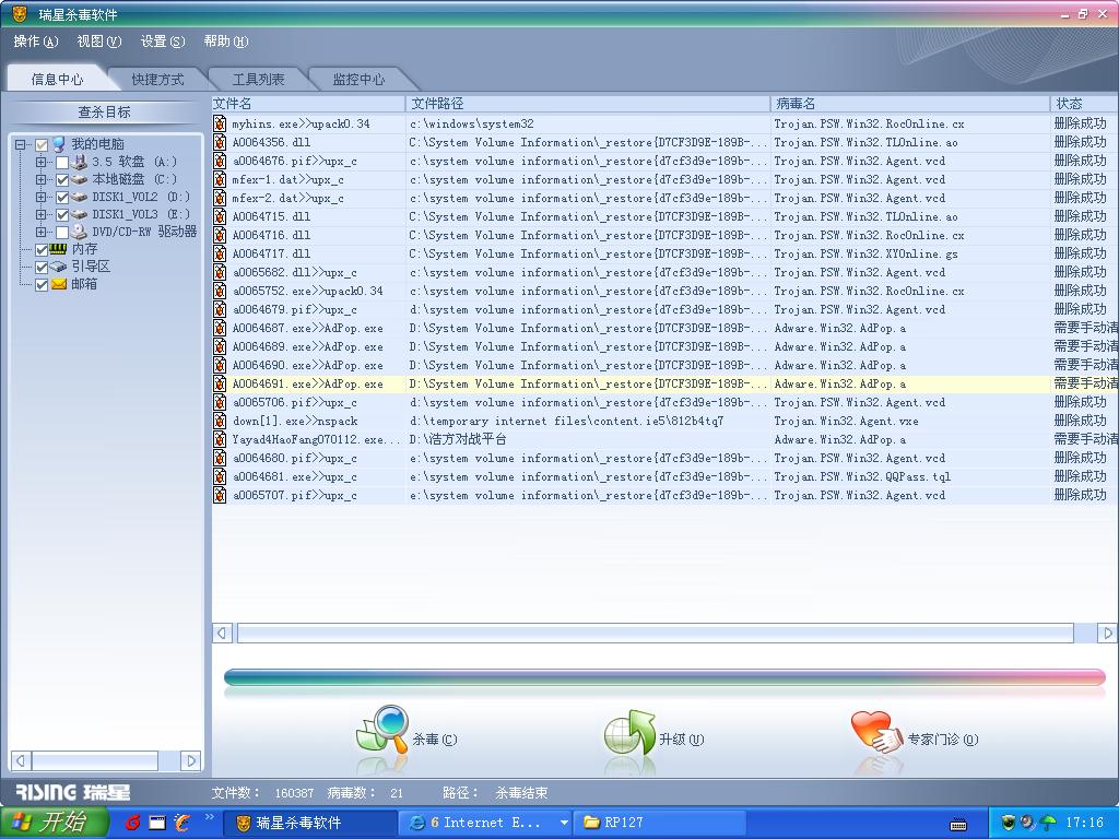 2,用瑞星老是提示有病毒,在安全模式下也除不了