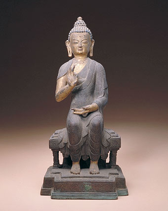 释迦牟尼佛坐像  14-15世纪  西藏黄铜铸造  高81cm
