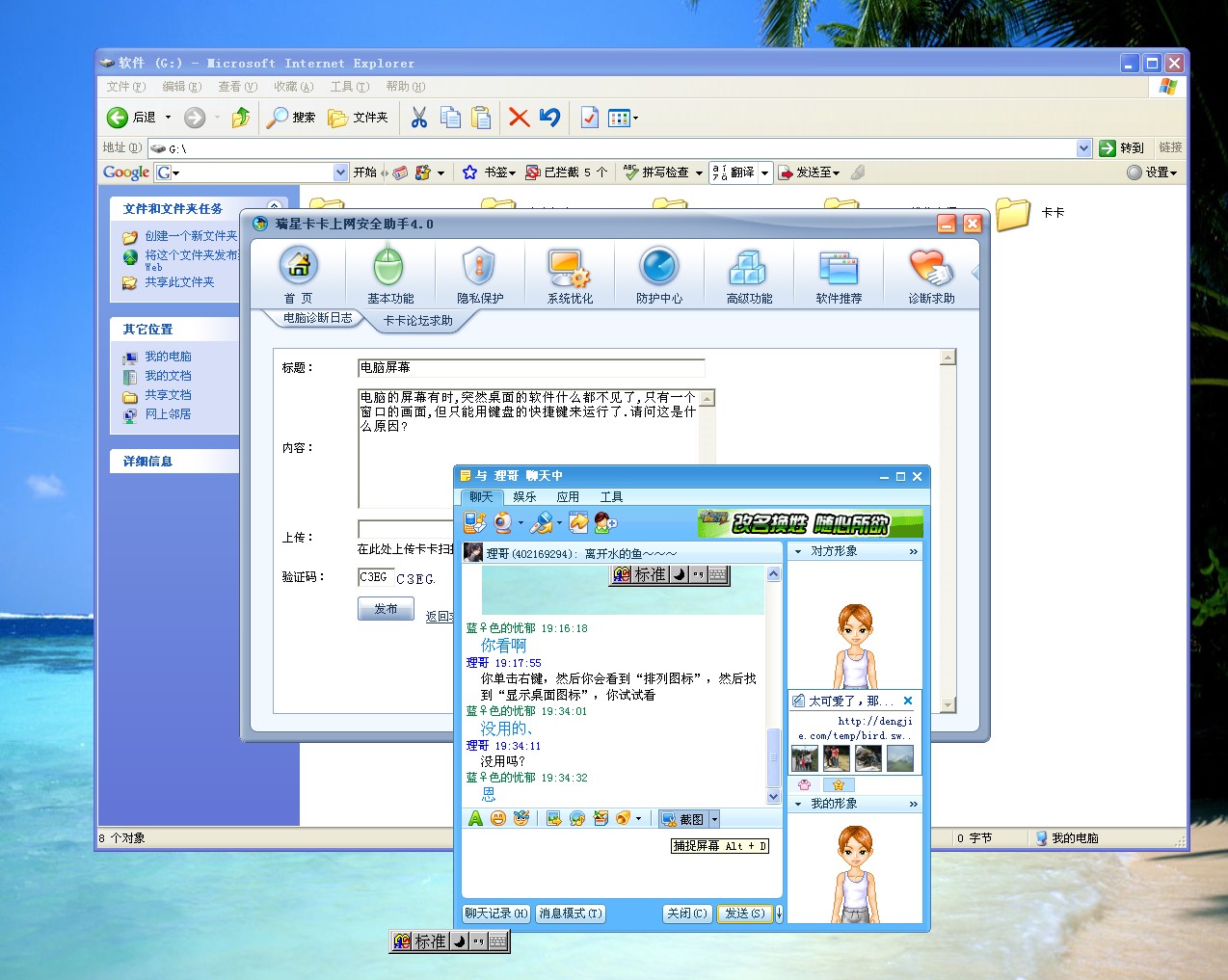 电脑的屏幕有时,突然桌面的软件什么都不见了,只有一个窗口的画面,但只能用键盘的快捷键来运行了.请问这是什么原因?