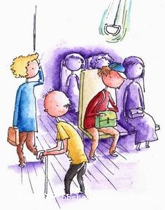 因为有时如果不坐下,连站的位置都没有