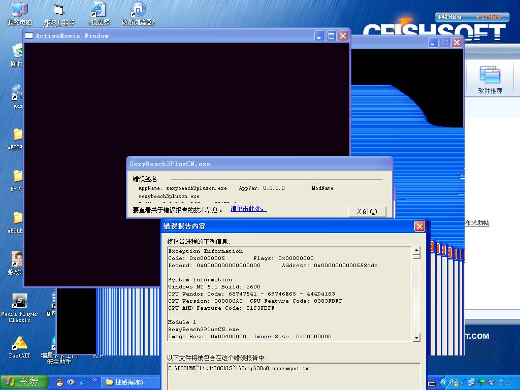 玩一些游戏的时候播放游戏Logo影片的时候 就弹出这个窗口播发而后死机