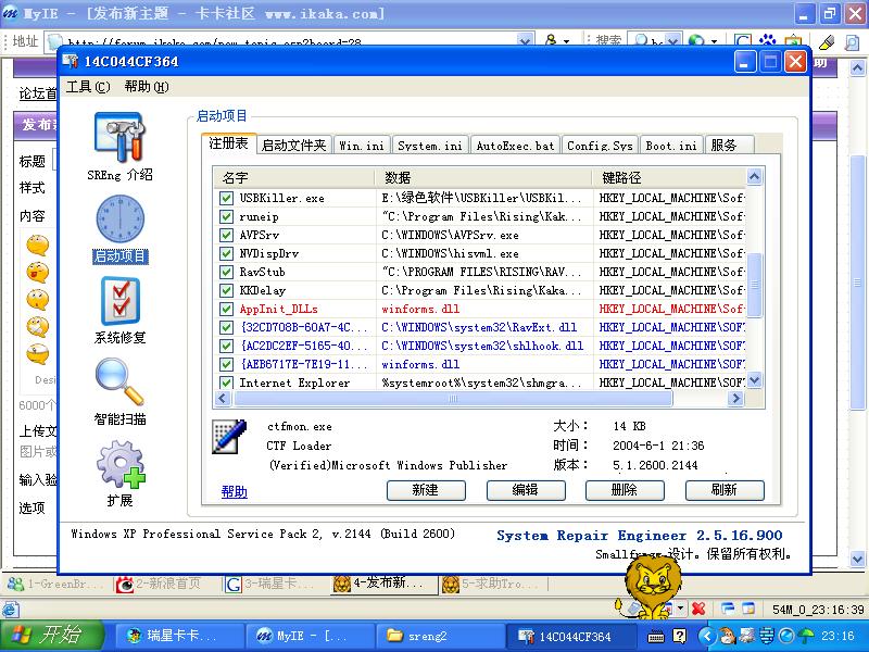我按照您的要求作了,现在瑞星最新的版本查不出病毒,电脑也快多了。就是当时winforms删不掉。现在每次我用sreng2启动项目扫描注册表时,提醒我注册表值appinit被修改为非正常值(实际应该为空),要我查电脑内是否存在病毒。那我电脑内还有病毒吗,瑞星查不出来,知道是什么病毒吗,怎么解决呢?或者直接在安全模式状态下将这一项删除行吗?