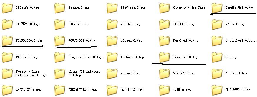 FOUND这些为名字的你可以删除,其它的都不知道是不是你自己添加,要不就是扫描的时候,扫出来的碎片,然后自动生成.TMP