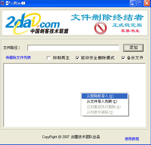 2、运行XDELBOX,右击待删除文件列表窗口。点击“从剪贴板导入”(图2)。