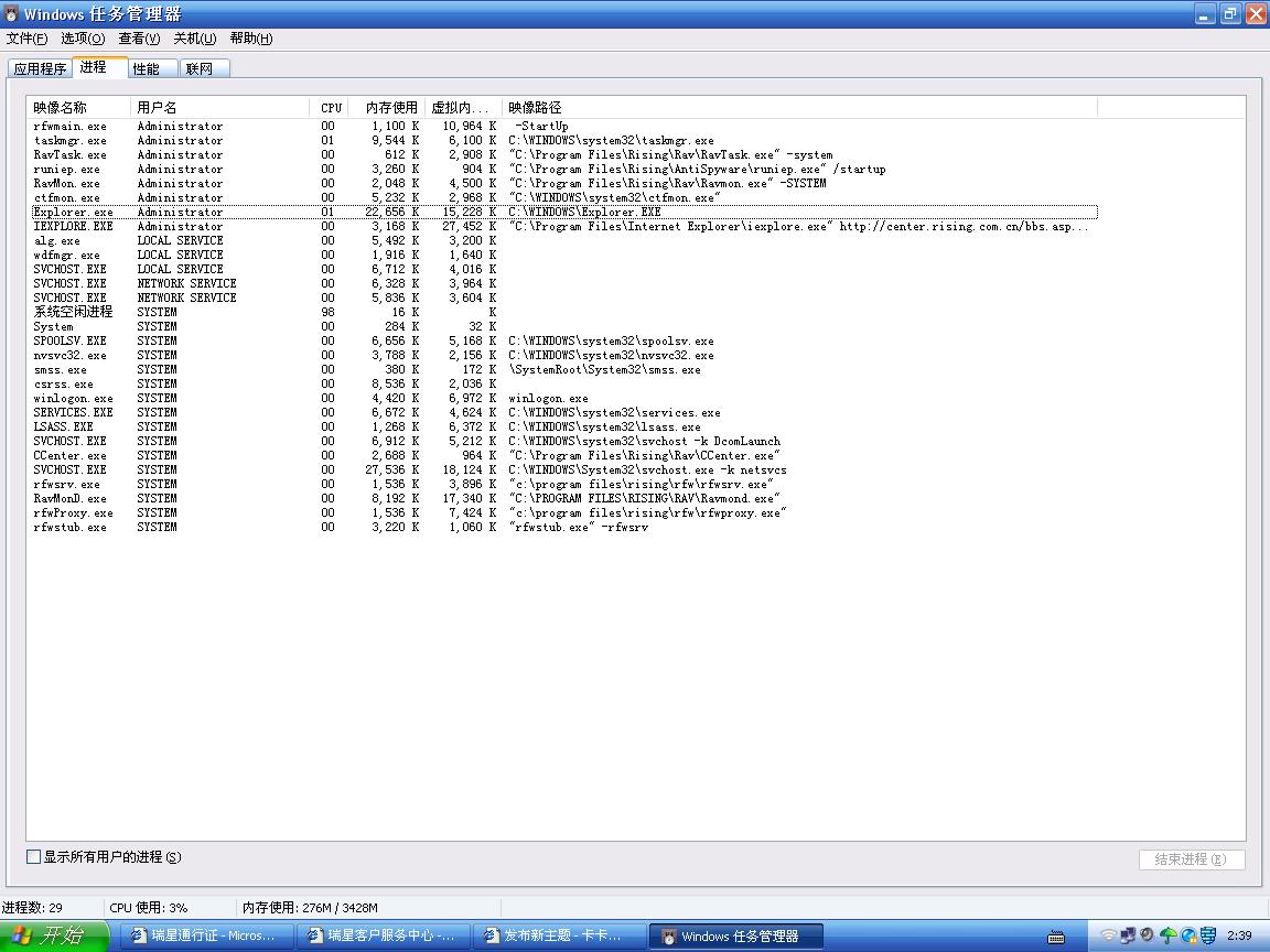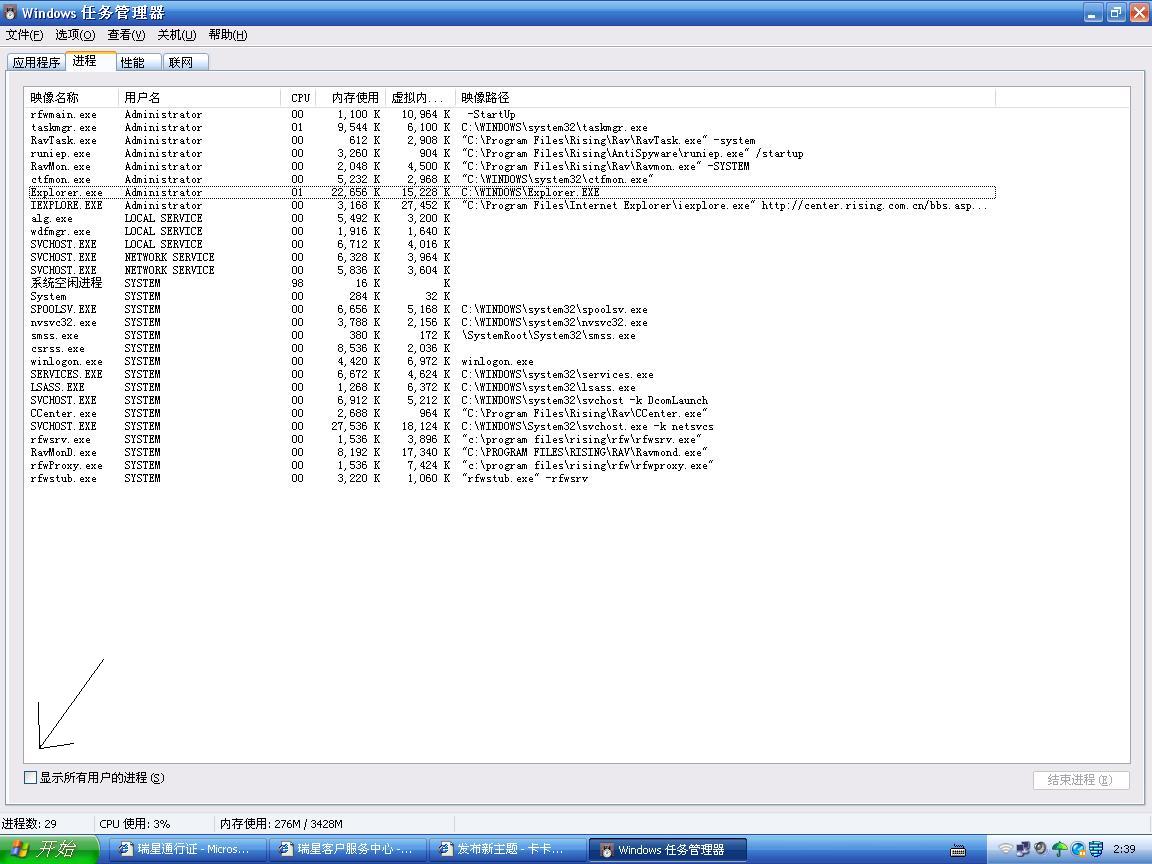 发现----系统没有加载(Explorer.exe)等文件-只 加载了(防火墙)....