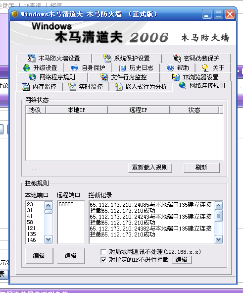 补充一下,如果不打开木马清道夫,感觉不到这个IP地址的攻击.