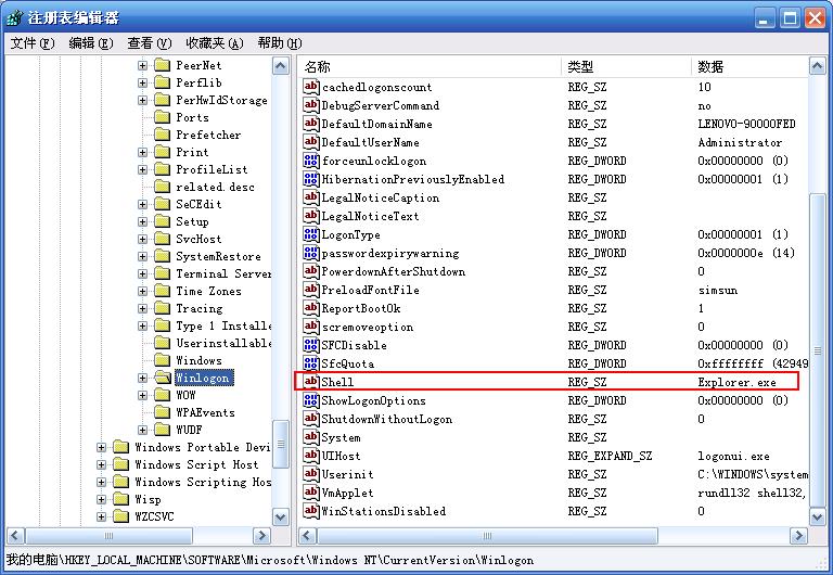 打开注册表的 HKEY_LOCAL_MACHINE\SOFTWARE\Microsoft\Windows NT\CurrentVersion\Winlogon 看看里面是否有Shell项,如有看看是否为 Explorer.exe 没有就新建一个“字符串”值是 Explorer.exe