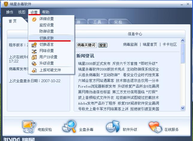 晕,切换瑞星皮肤就OK啊!杀鸡用了牛刀……
