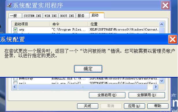 先不管你有没有这个权限,如果你原来用的好好的下载瑞星的注册表修复试试,如果不行,再研究。