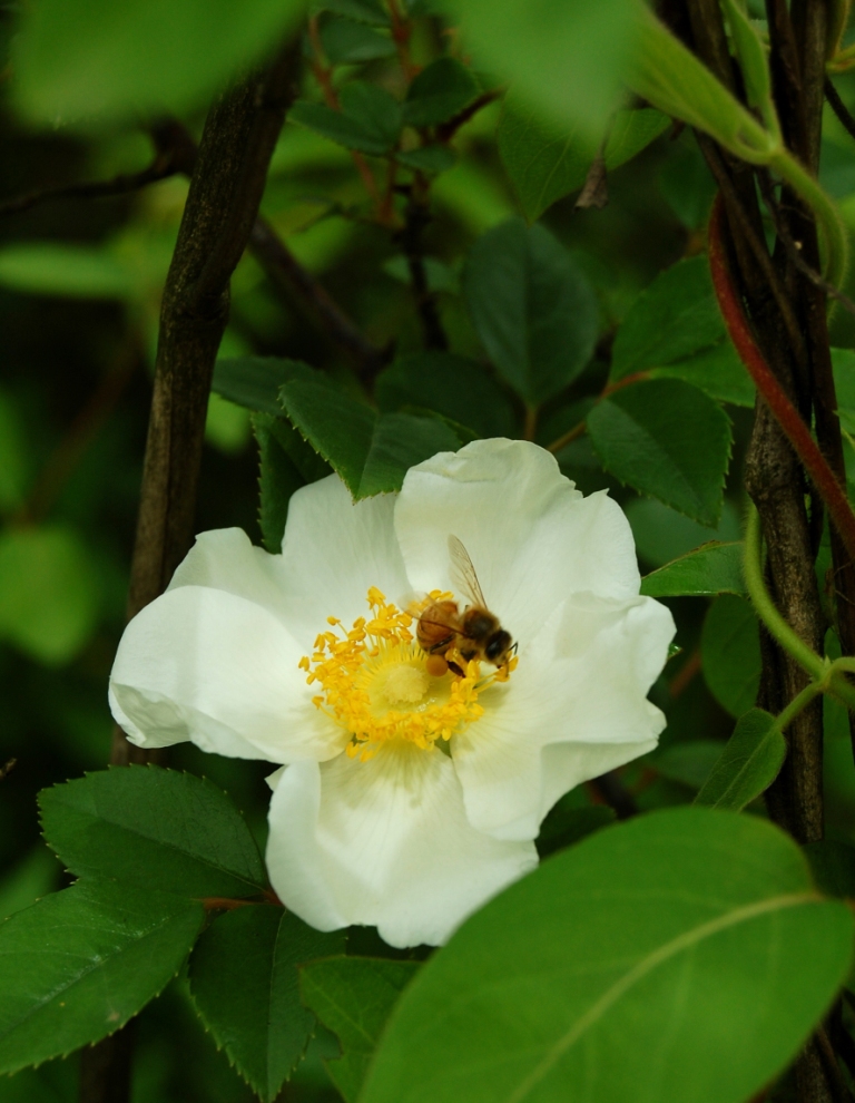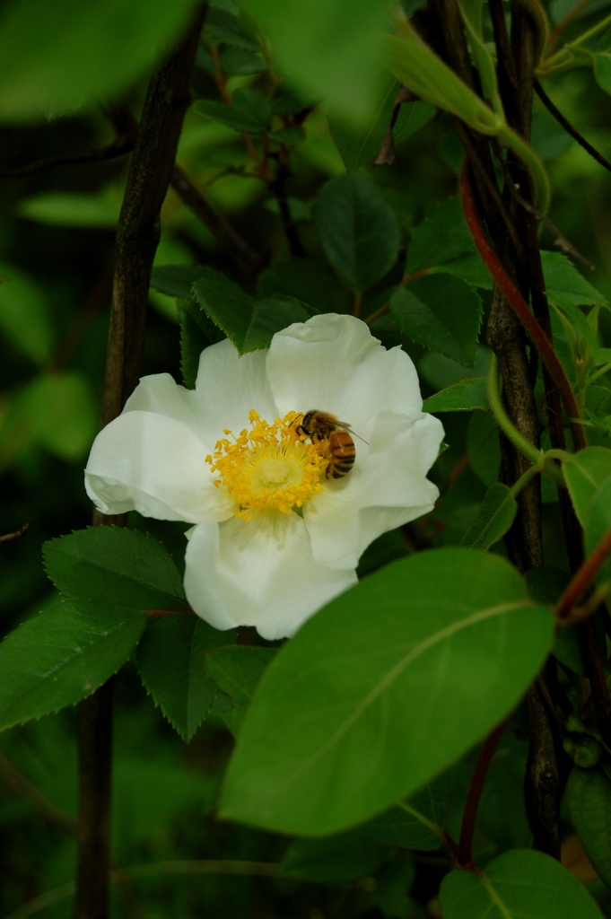 这个花好像叫金樱子,是一种中药,它的果实就是花下面那个长满刺的那个啦,熟了可以吃的,当然要把刺去掉,甜甜的,我小时候吃过