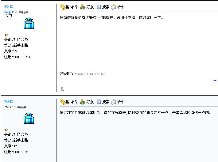 今天上午9点左右 诺顿枪手在反病毒板块刷版 禁言如下用户