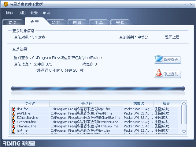 用瑞星的在线杀毒 ,一开始提示说什么iexplore文件上次跳过, 然后杀到300多个文件 大概是扫描进程的阶段 ,就会自动关闭网页 这时用下载版查杀 ,才能发现这个隐藏的东西 ,正常扫描根本不会出现 ,清除后还有 ,怎么都弄不干净 .