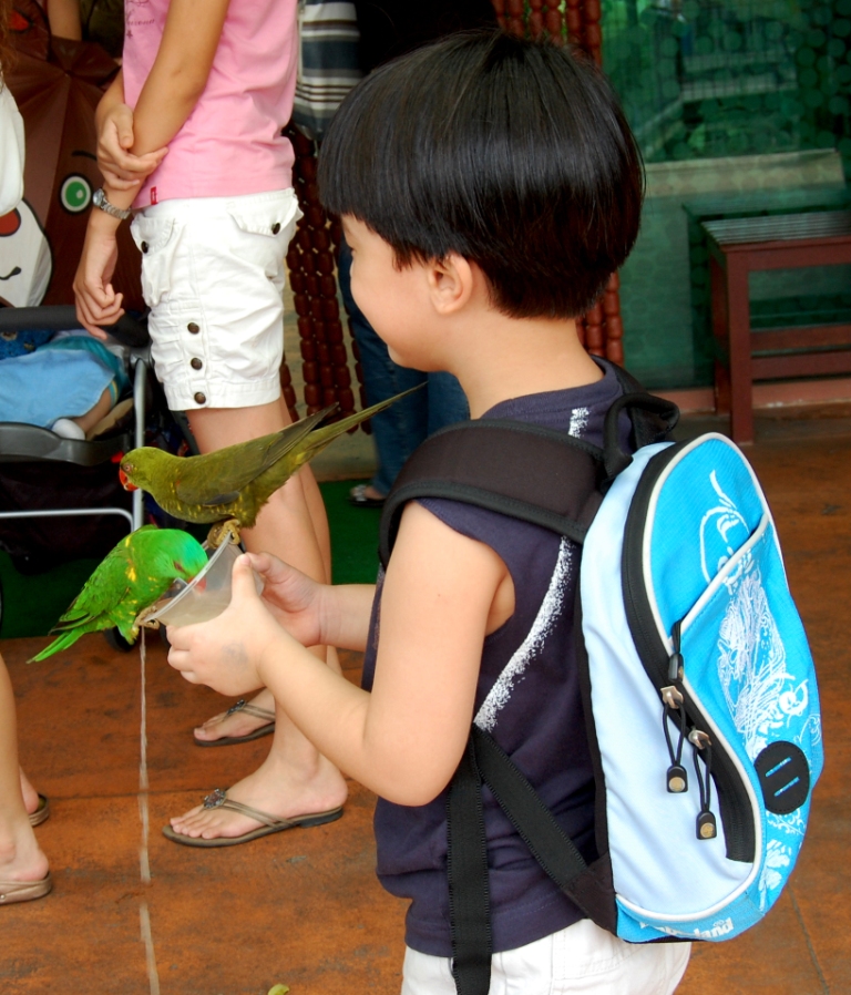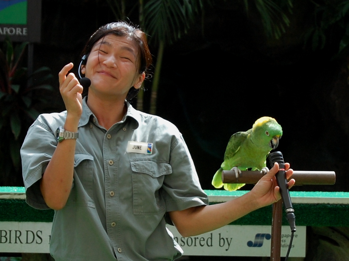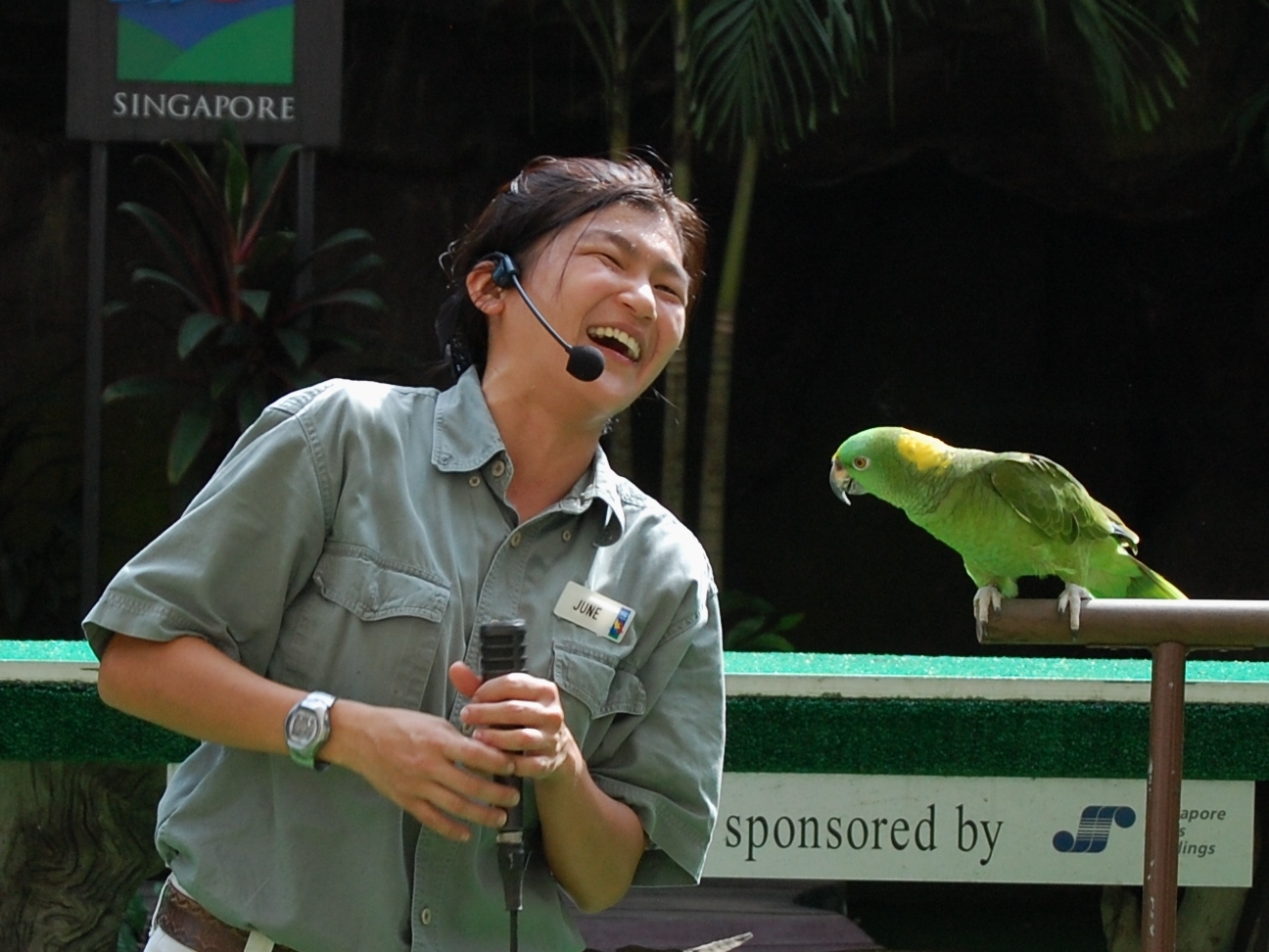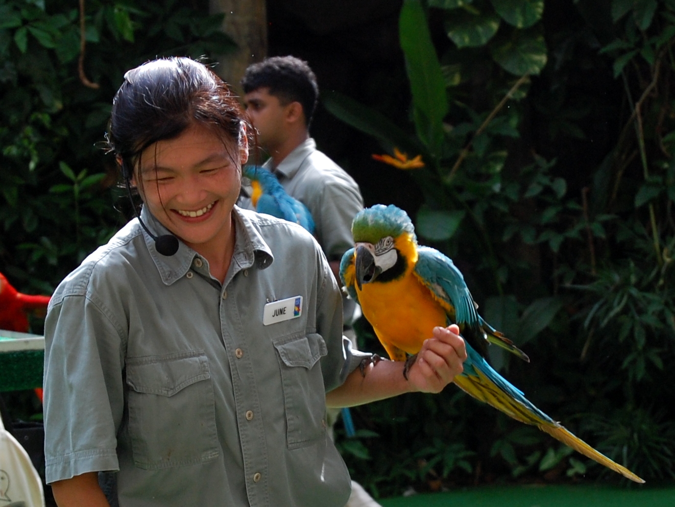 花了半天的时间游玩了JURONG BIRD PARK(裕廊飞禽公园),印象最深的,不是那些希奇古怪的鸟儿,而是美丽的鸟儿与人和谐共处的情形。在博彩剧场,它们和主人一起献上精彩的演出,在彩鹦谷,五颜六色的蜜鹦鹉甚至飞到我们的身上!