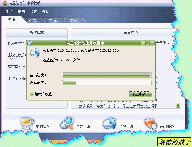 很多朋友都在用卡巴,但是又些毒卡巴又杀不了,就多装一个什么木马克星,360啊,木马杀客之类的东西,对一些国产的病毒卡巴就又点力不从心了,对于迅雷或者快车这些下载来的压缩包,卡巴像老太婆一样杀得慢,还事瑞星优势(我曾在瑞星论坛混的)没关系,卡巴瑞星我们同时拿下