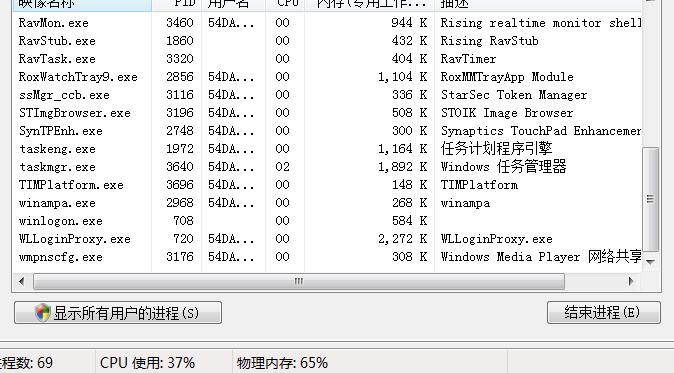 可以点击显示所有进程,把进程都显示出来就能看到了,看看有什么异常进程