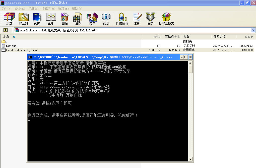 ring3下穿透还原保护,破坏硬盘前4KB数据。这是此演示病毒作者的原话。