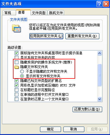 1.打开我的电脑/工具/文件夹选项/查看,做如图设置后,按照路径查找文件。