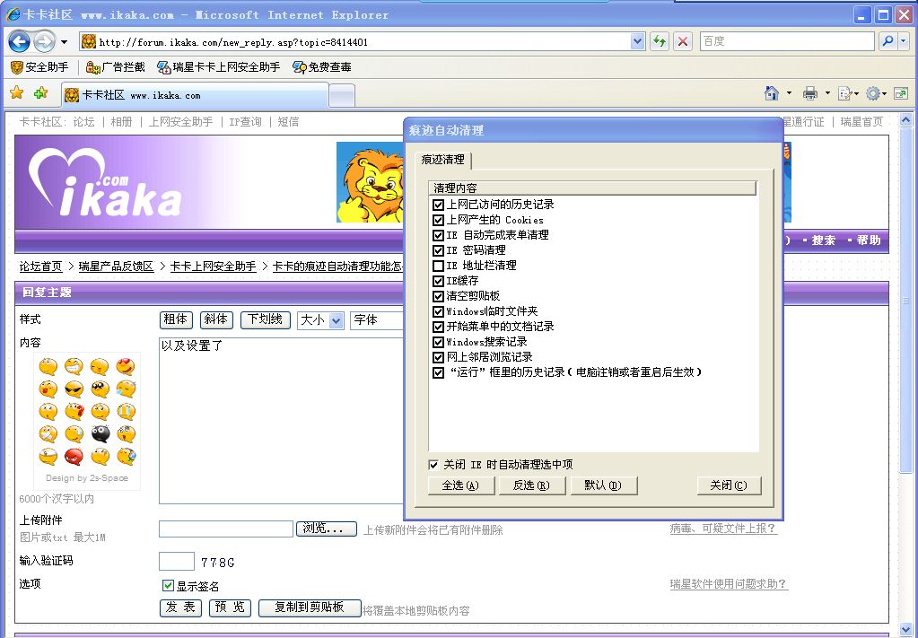 卡卡的痕迹自动清理功能怎么在ie7里面不起作用