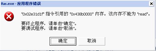 ras.exe文件损坏。楼主把卡卡卸载了重新安装试下,看能否正常?