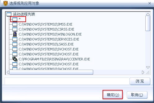 3、选择所有进程,即“*”,点【确定】