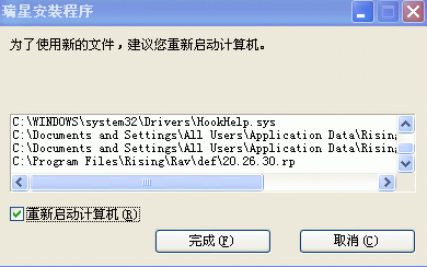 上次这样的时候我就把瑞星给拆了,结果当天晚上就中了病毒,弄了好几天,系统都重新还原了,等一切弄完后装上瑞星就好了,升级没再提示重起。
