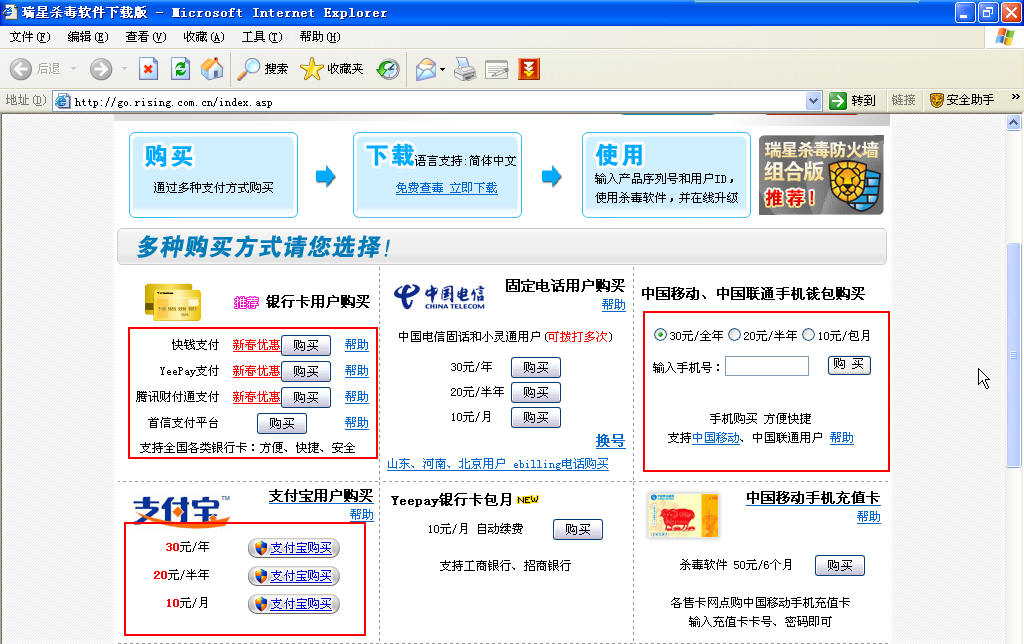 具体查看瑞星网站:http://go.rising.com.cn/index.asp