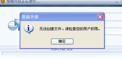 八.现象描述:杀毒软件升级时弹出提示“无法创建文件,提示检测用户权限”。