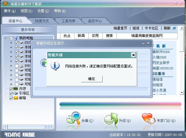 首页 » 个人产品讨论区 » 瑞星杀毒软件 » 瑞星杀毒软件2011 » 为什么我的瑞星无法升级?
