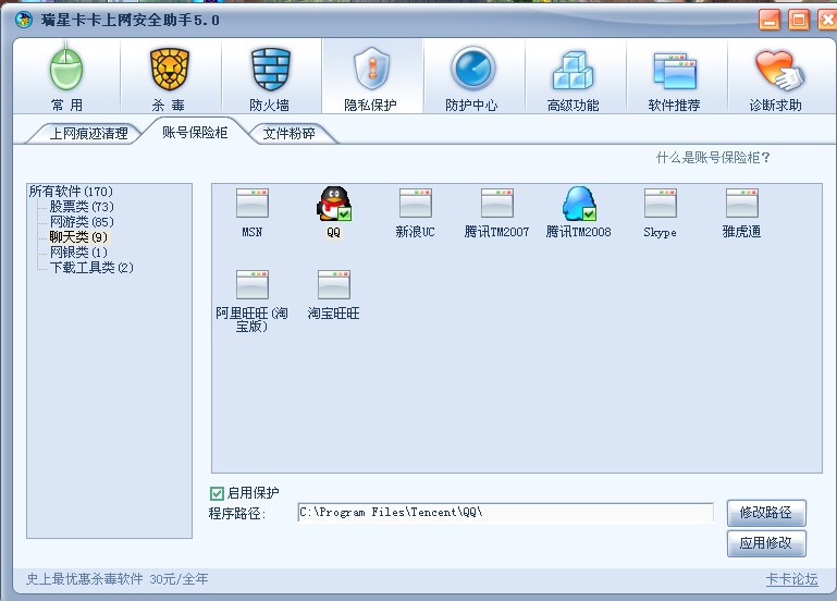 恩.这个是正常现象,在卡卡里面直接双击被保护软件图标,不会弹出提示框的。虽然没有弹出保护框,但实际保护效果是一样的,请不必担心!