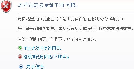 我使用的是IE7浏览器和农行网银,当需用网银证书登录农行网银时,IE7浏览器去总是提示:"此网站的安全证书有问题,不是由受信任的证书颁发机构颁发的,建议不去浏览此网页"等等,然后必须再次用证书登录网银才行(我的网银绝对没问题),我想请教一下:怎样才能去掉那恼人的提示?谢谢了!