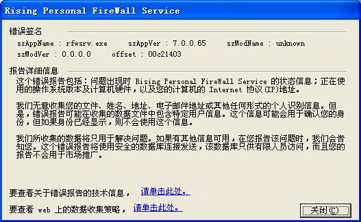 Rising Persondl Firewall Service 遇到问题需要关闭,我们对此引起的不便于工作表示抱歉。 上面那个东东是什么来的? 是不是有病毒入侵了???