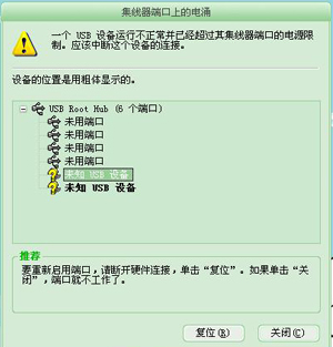 所有的USB接口都不好使了 插上usb设备就显示下面的样子