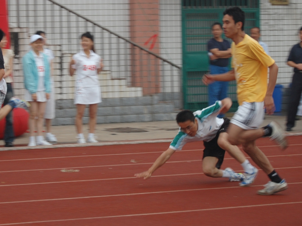 摔倒的人人品很好啊,没有直接滚到黄衣服的脚下,弄个两败俱伤:)