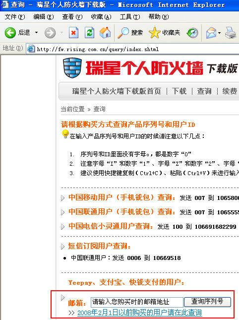 2月4日购买的瑞星个人防火墙,到现在还没有回音。