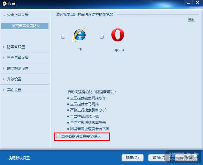 希望显示网页错误,网络不通,404,502,之类的,还可以自定义错误提示,或者网页一直处于白板状态,总之不要让人知道是瑞星拦截了。