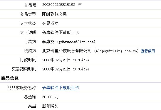 如果电子邮箱里还没有收到,就咨询瑞星客服查询