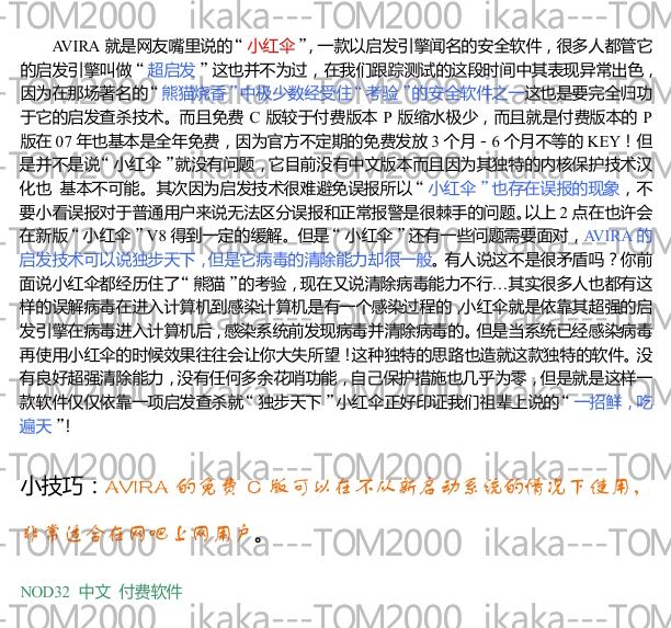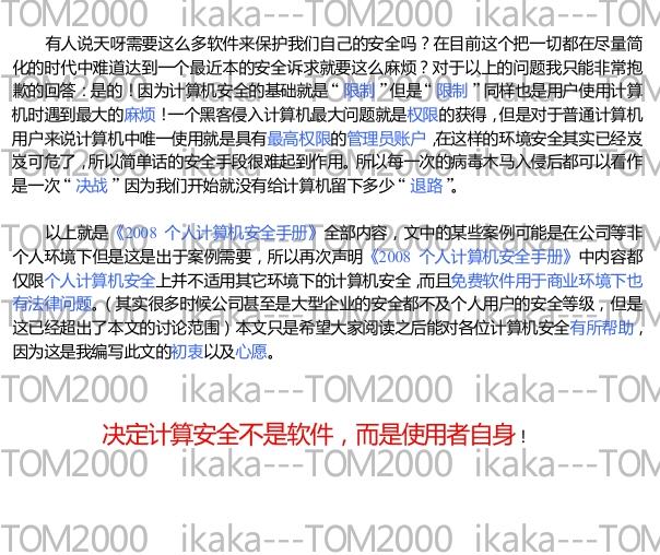【tom2000的贴子】当瑞星主程序被禁止启动后,其内部集成的功能是无法开启。
