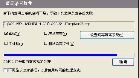 第一个病毒是在temp文件夹下,把这个文件夹清空就行了。然后把病毒隔离系统的内容也清空再全盘杀毒。