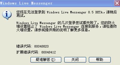 在瑞星杀毒软件里----选择了"防御",出现"系统加固"\"应用程序保护"\"程序启动控制"\"恶意行为检测"\"隐藏进程检测" 这6个可选项目----选择"应用程序访问控制",点"设置"----添加了"MSNMSGR.EXE",点"应用"---运行了WINDOWS LIVE,还是不行,出现的问题如一楼的图片一模一样,问题依然没有解决呢