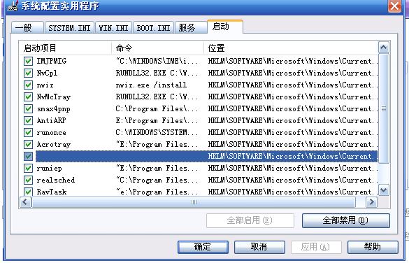MSCONFIG启动项里有空白的,如图,这是怎么回事啊?我是菜鸟,大家别笑我!