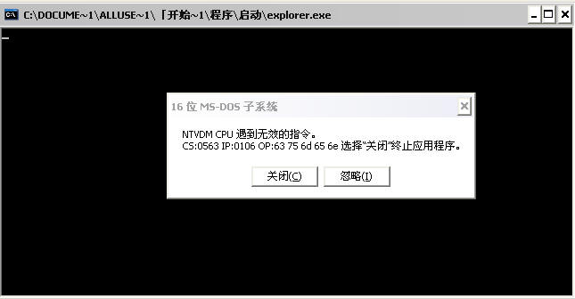 查看完整版本: 杀毒后重启开机后提示NTVDM CPU 遇到无效的指令