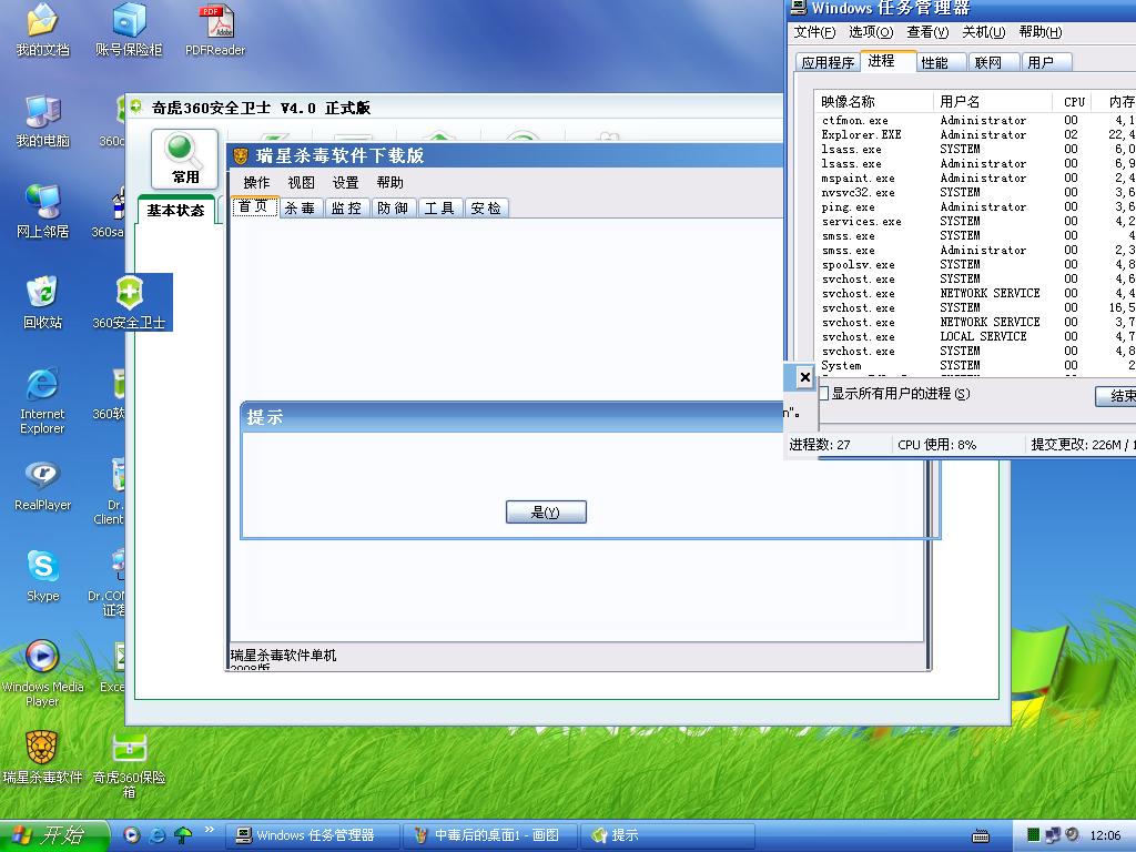 1.重装C盘N次,用升级后正版瑞星全盘杀毒无效.