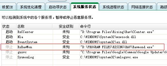 已经咨询过瑞星工程师,这个服务停止是正常的,只要监控全部开启就可以了。
