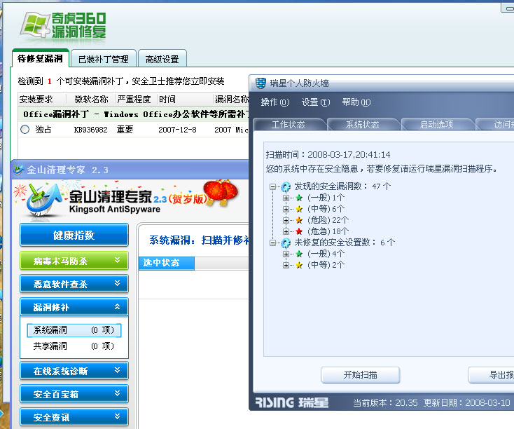 RT 用系统自动更新打了所有补丁后,分别用三种软件扫描出来,差别怎么这么大呢?